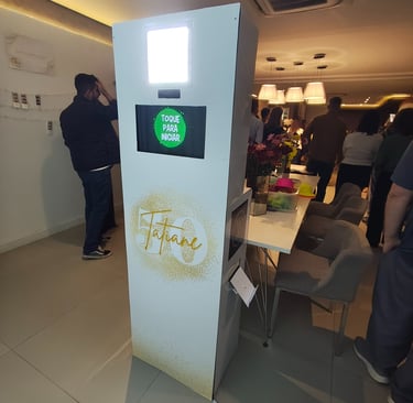 Experiência interativa com nosso totem de fotos. Crie memórias divertidas!