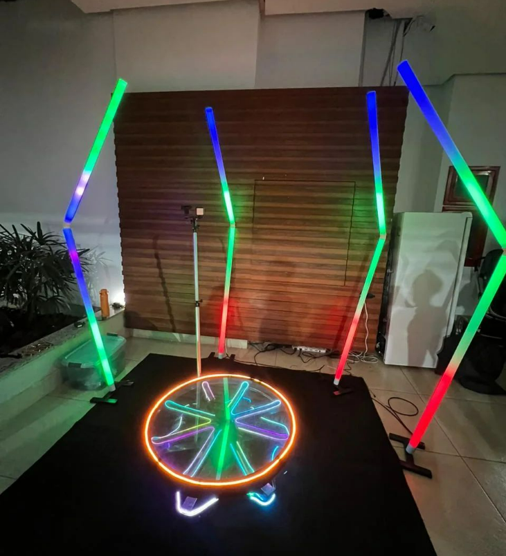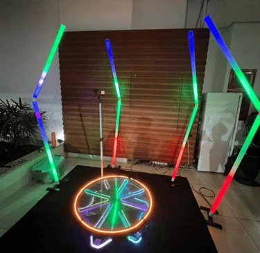 Você pode usar as setas led neon como corredor de entrada ou em volta da plataforma 360