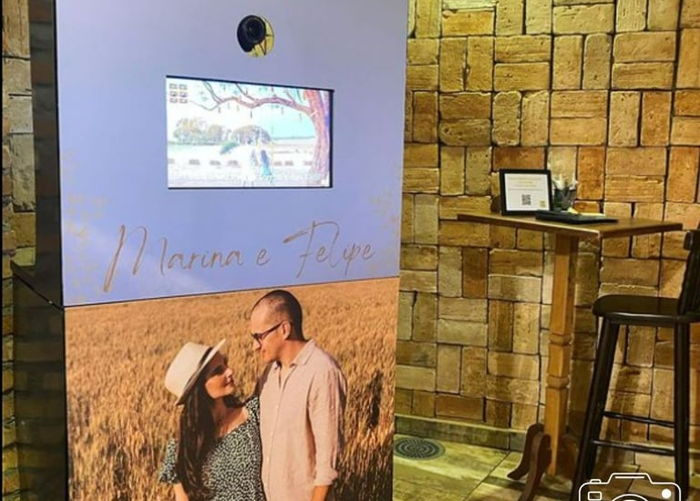 Personalização de totem e cabine fotográfica para dar ainda mais elegância para seu evento.